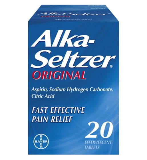 Alka-Seltzer Original tablets for fast and effective relief of mild to moderate pain including headache, migraine, neuralgia, toothache, sore throat, period pains, aches and pains.