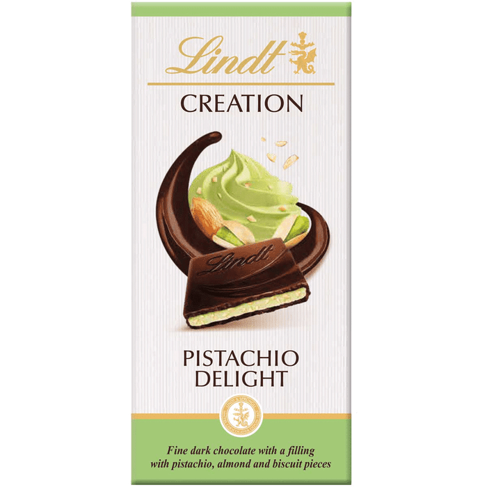 sugar, cocoa mass, cocoa butter, milk powder, coconut fat, almonds (3%), almond cream (almonds, sugar), anhydrous milk fat, lactose, emulsifier (soya lecithin), colour (chlorophylls and chlorophyllines), flavouring (pistachio), skimmed milk powder, flavouring, barley malt extract. , May contain egg, wheat and other nuts. , Dark chocolate contains: Cocoa solids: 47% minimum